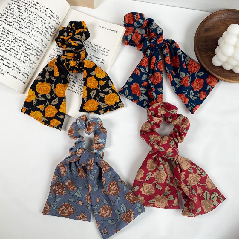 Floral hair scarf scrunchies, elastic hair ties
